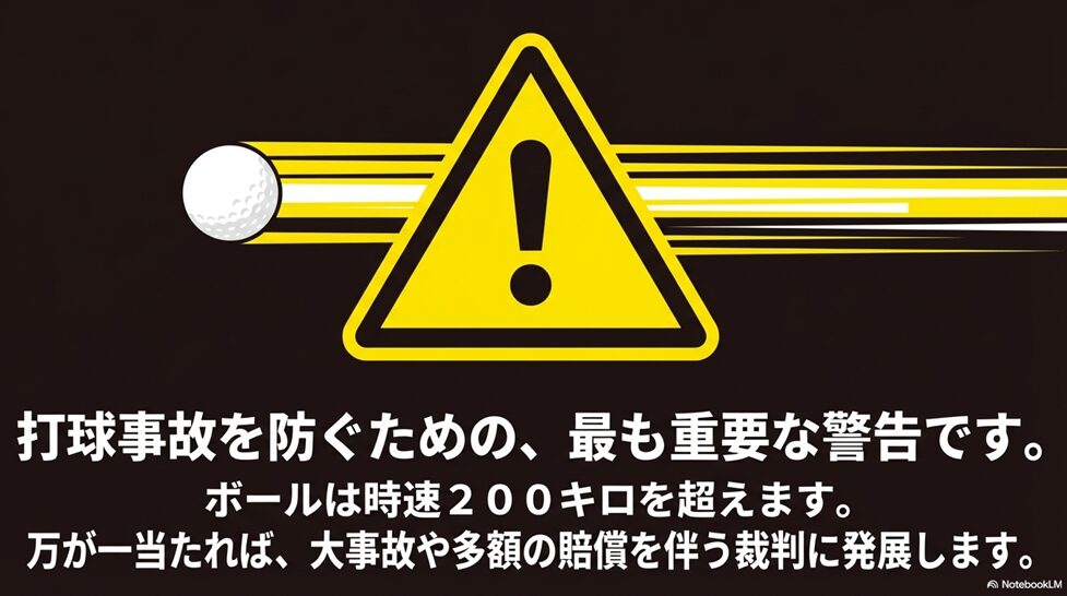 ゴルフボールは時速200kmを超えるスピードで飛ぶこともあり、万が一人に当たれば大事故につながる恐れがあります。