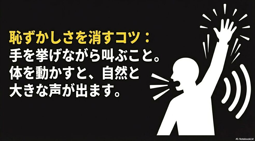 体の動きに声を連動させることで、自然と恥ずかしさが軽減されるためです。