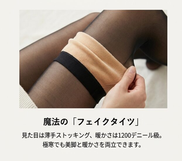 - 110デニール以上・裏起毛: 暖かさは最強ですが、見た目が少し重くなります。