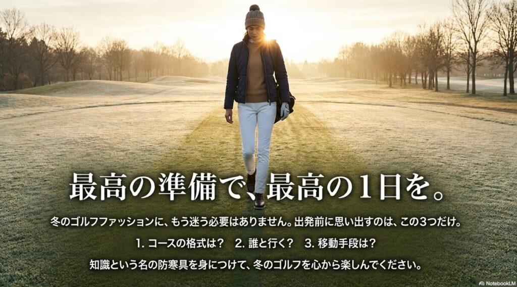 冬のゴルフ場へ行く際、どのような服装で行き帰りすれば良いのか悩んでいませんか。