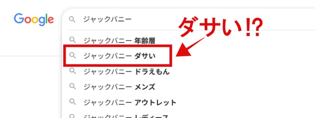 「ジャックバニーはダサい」という予測変換を見て、不安になっていませんか?