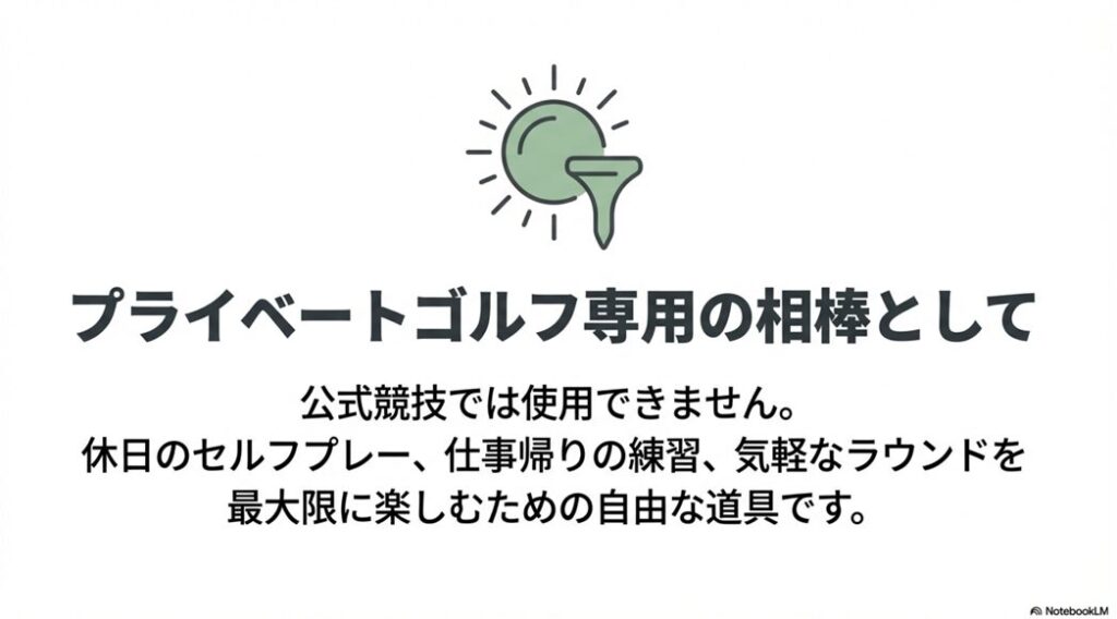 あくまでプライベートなラウンドや練習、セルフプレーでの楽しみとして活用するのが正解です。
