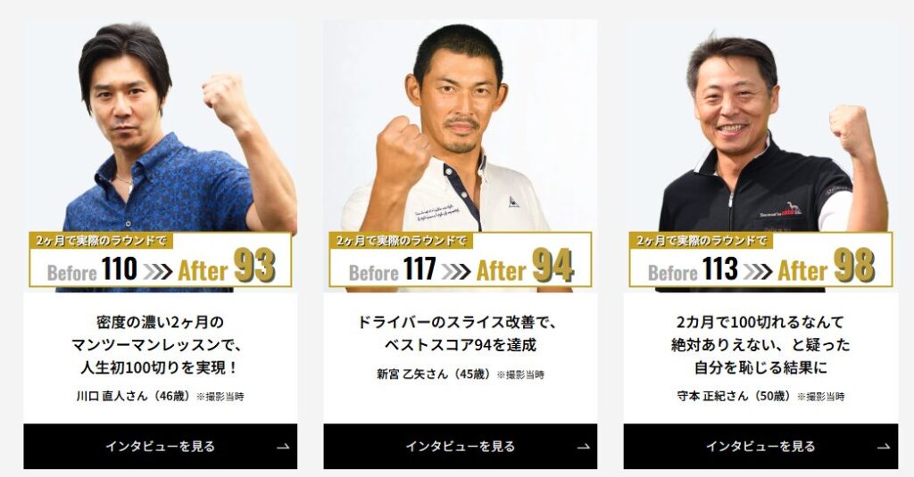 - 利用者の92%が2ヶ月で100切りを達成したという高い実績がある