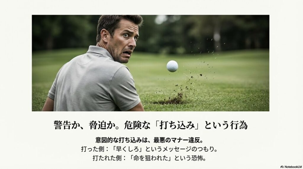 ゴルフ場における最大のマナー違反であり、最も危険な行為の一つが「打ち込み」です。