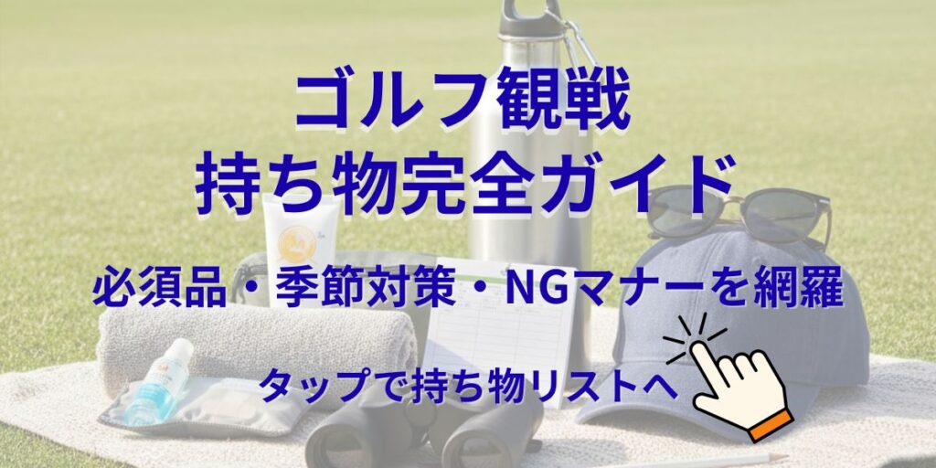 初めてのゴルフ観戦でも安心な「持ち物リスト」と「観戦マナー」を徹底解説した記事がこちらです。ぜひチェックしてみてくださいね!