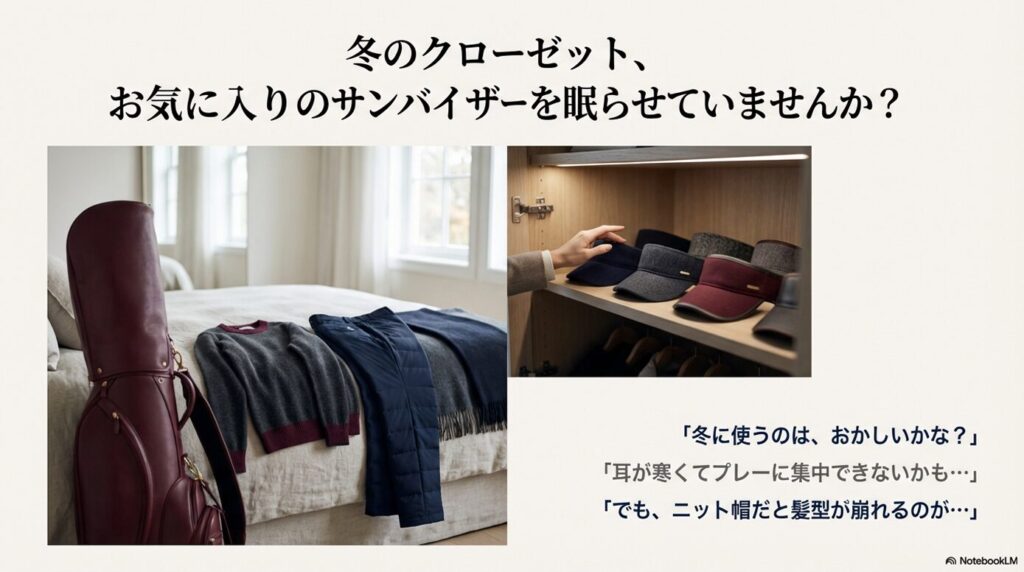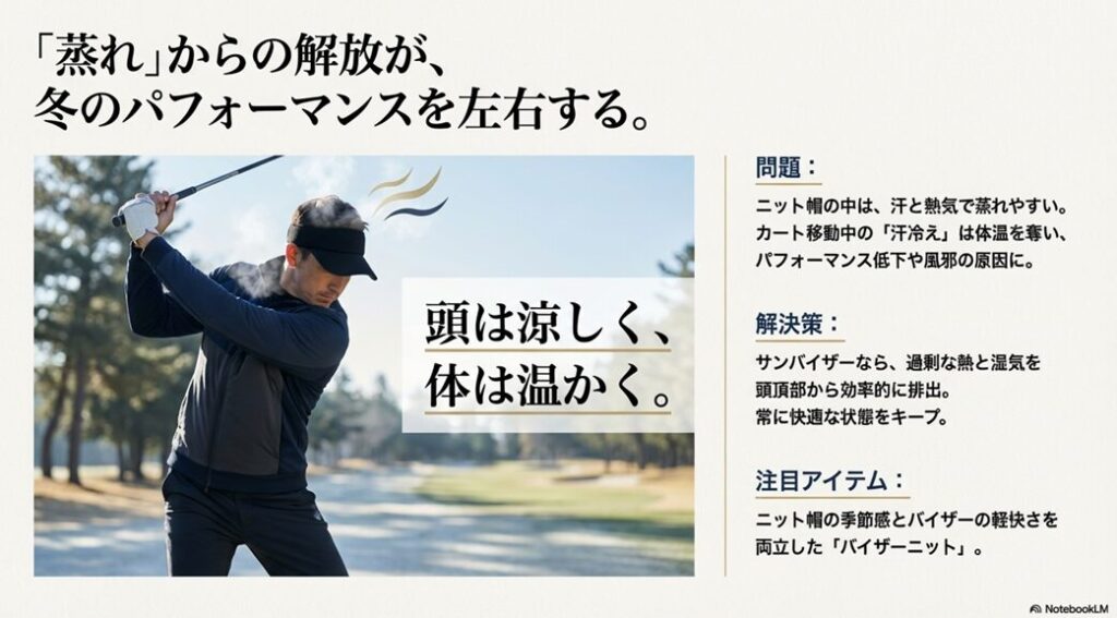 選び方と合わせ方さえ間違えなければ、冬のサンバイザーは機能的にも理にかなった、賢いゴルファーの選択肢となり得ます。
