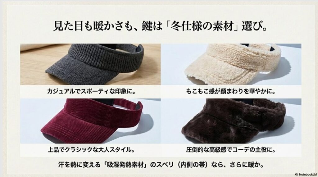 「このサンバイザー、お気に入りだけど冬に使ったら変かな?」「寒くて耳が痛くならないかな?」と、寒さ対策はもちろんのこと、マナーや見た目の面で悩んでしまう方は意外と多いものです。